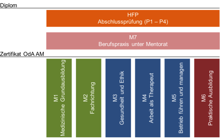 Die Ausbildung zur Naturheilpraktikerin, zum Naturheilpraktiker mit eidg. Diplom basiert auf einer modularisierten Struktur mit einer Abschlussprüfung, der Höheren Fachprüfung. Für die Zulassung zur Abschlussprüfung müssen Sie sieben Modulabschlüsse bestehen – entweder über den Besuch und erfolgreichen Abschluss der entsprechenden Module oder über das Gleichwertigkeitsverfahren.